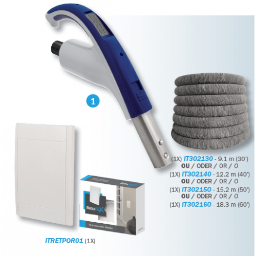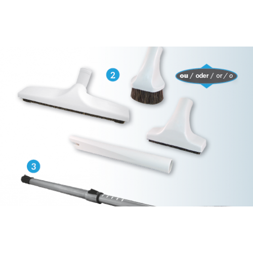 Rinkinys susideda iš 15,2 m žarnos su įmaute ir rankena, teleskopas,4 priedų rinkinys, pajungimo lizdas.